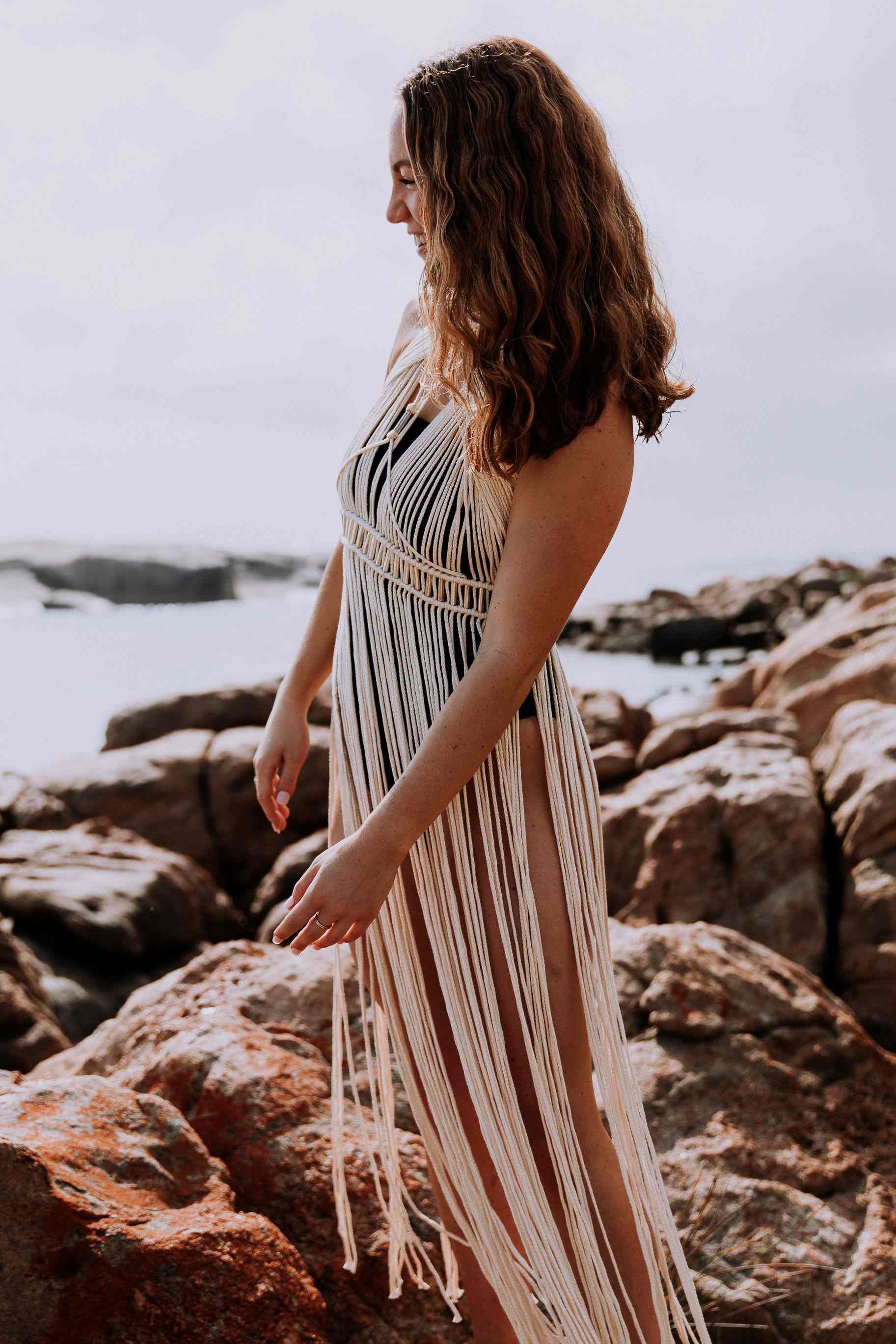 "This 'All Greek To Me' macrame dress is your ultimate choice for effortless elegance and timeless Grecian charm!"