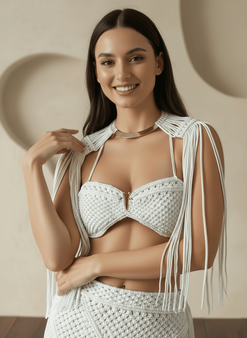 - Style with the matching Beach Babe Macrame Skirt for a coordinated and stunning look.