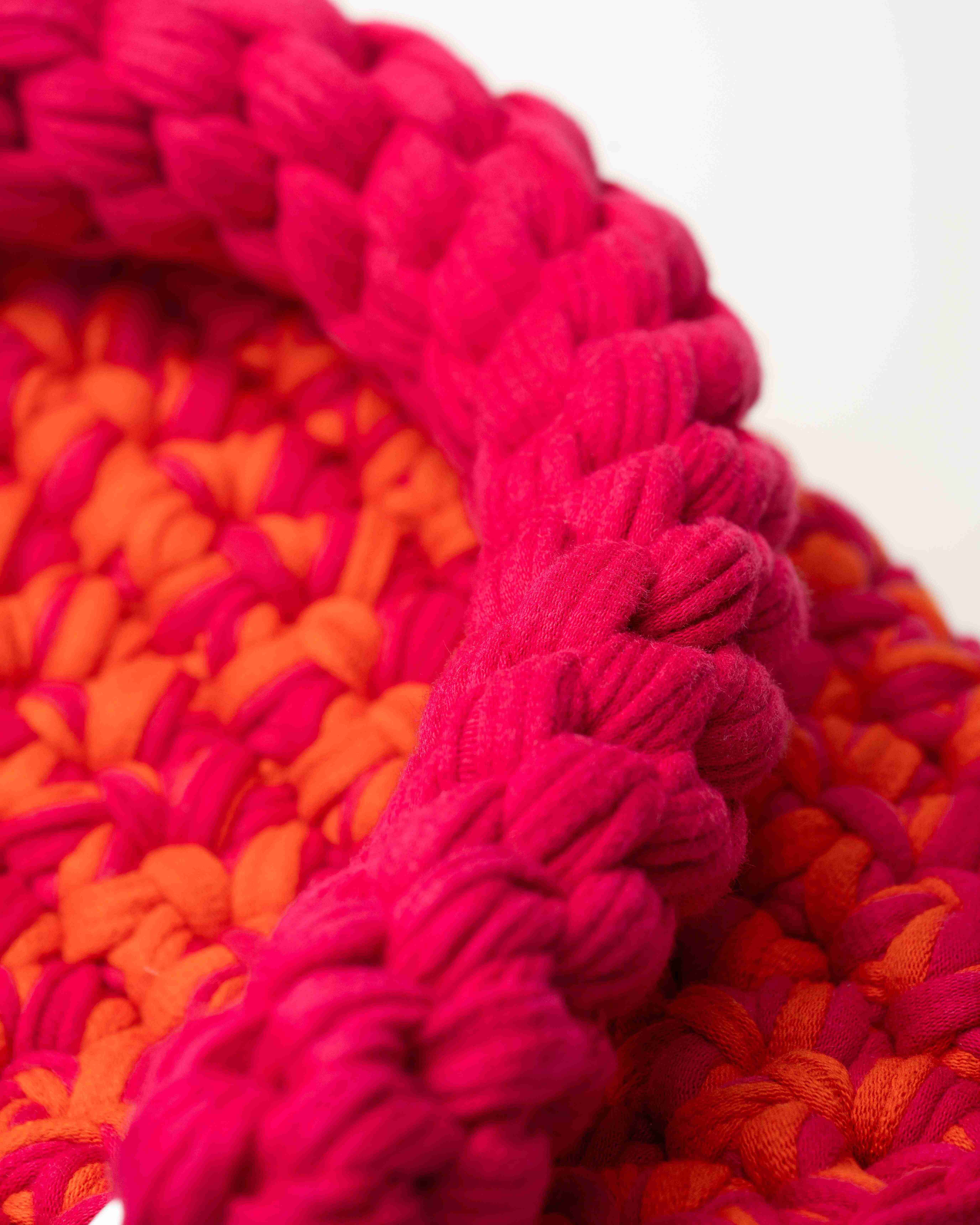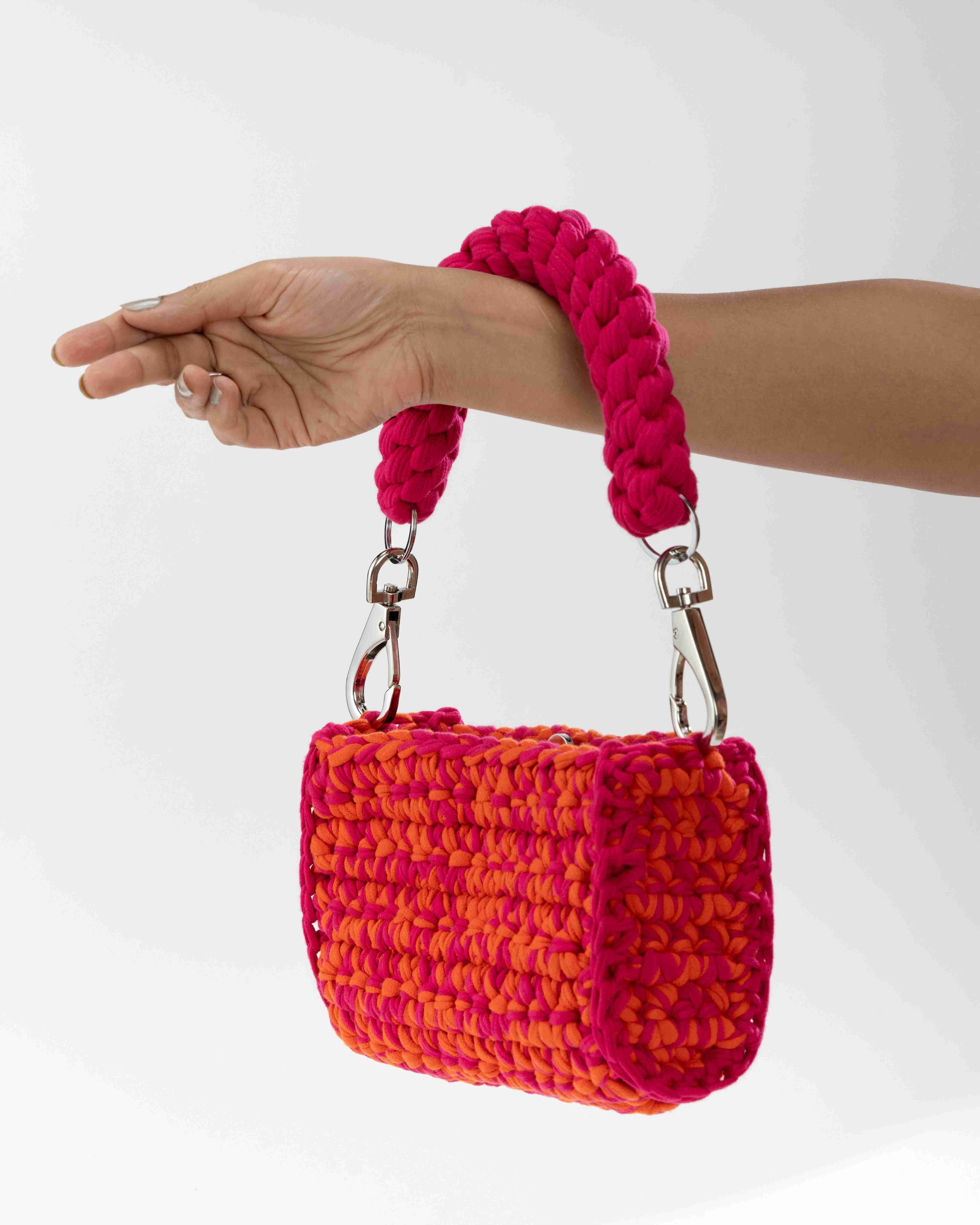 "Make a lasting impression with this striking pink & orange woven handbag—an essential for fashion-forward individuals!"