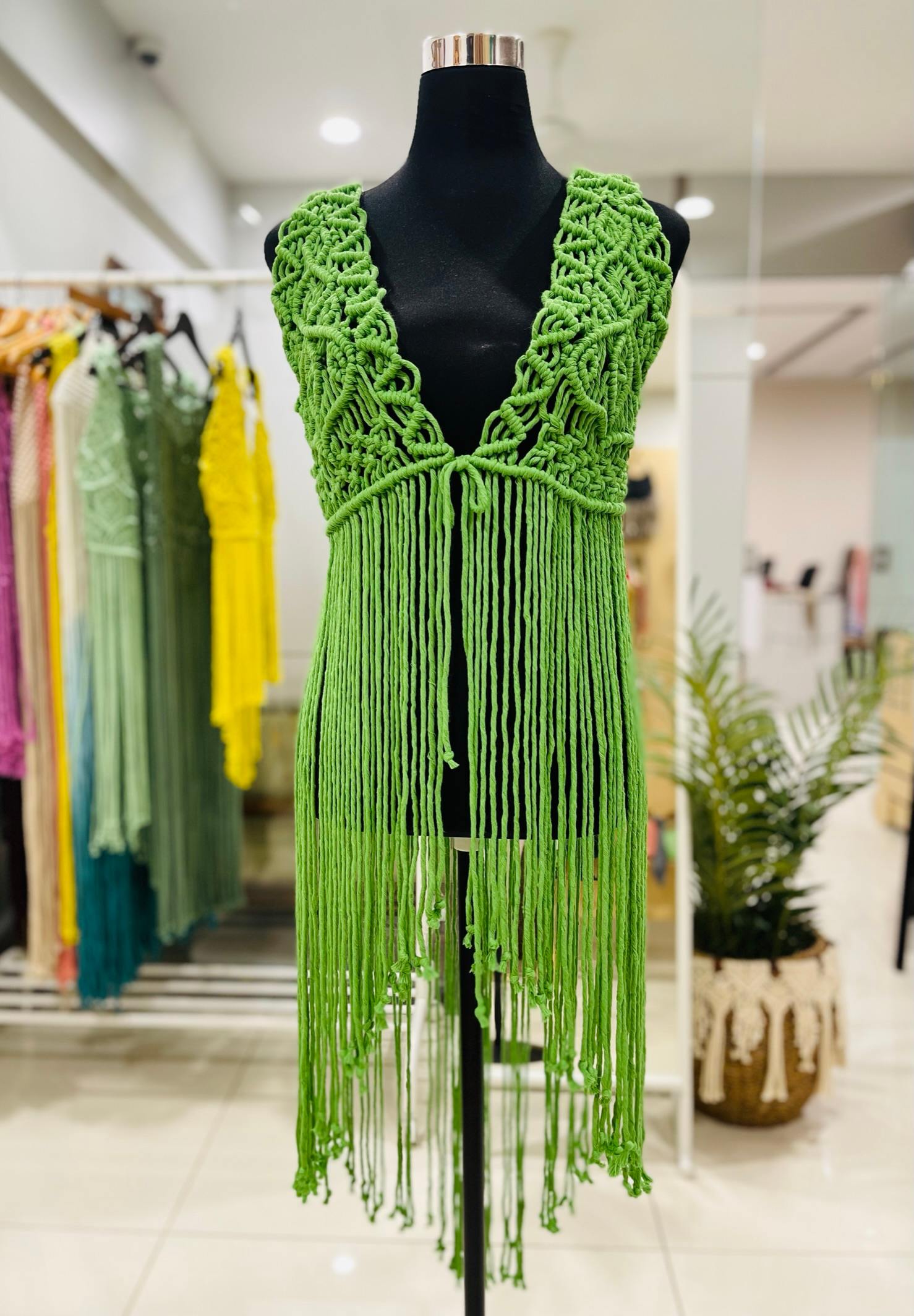 Brighten up your wardrobe with the 'Shrug it up - Lemon Yellow' macrame shrug, a playful and stylish layering piece. Handcrafted with intricate knots, it’s designed to add a burst of color and personality to any outfit, making it perfect for summer and spring fashion.