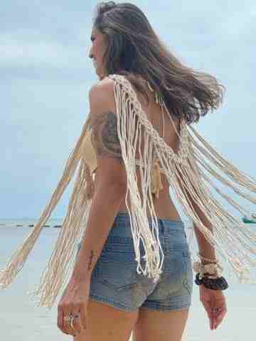 - Design: Handcrafted with detailed shell embellishments and fringes for a bold, breezy look.