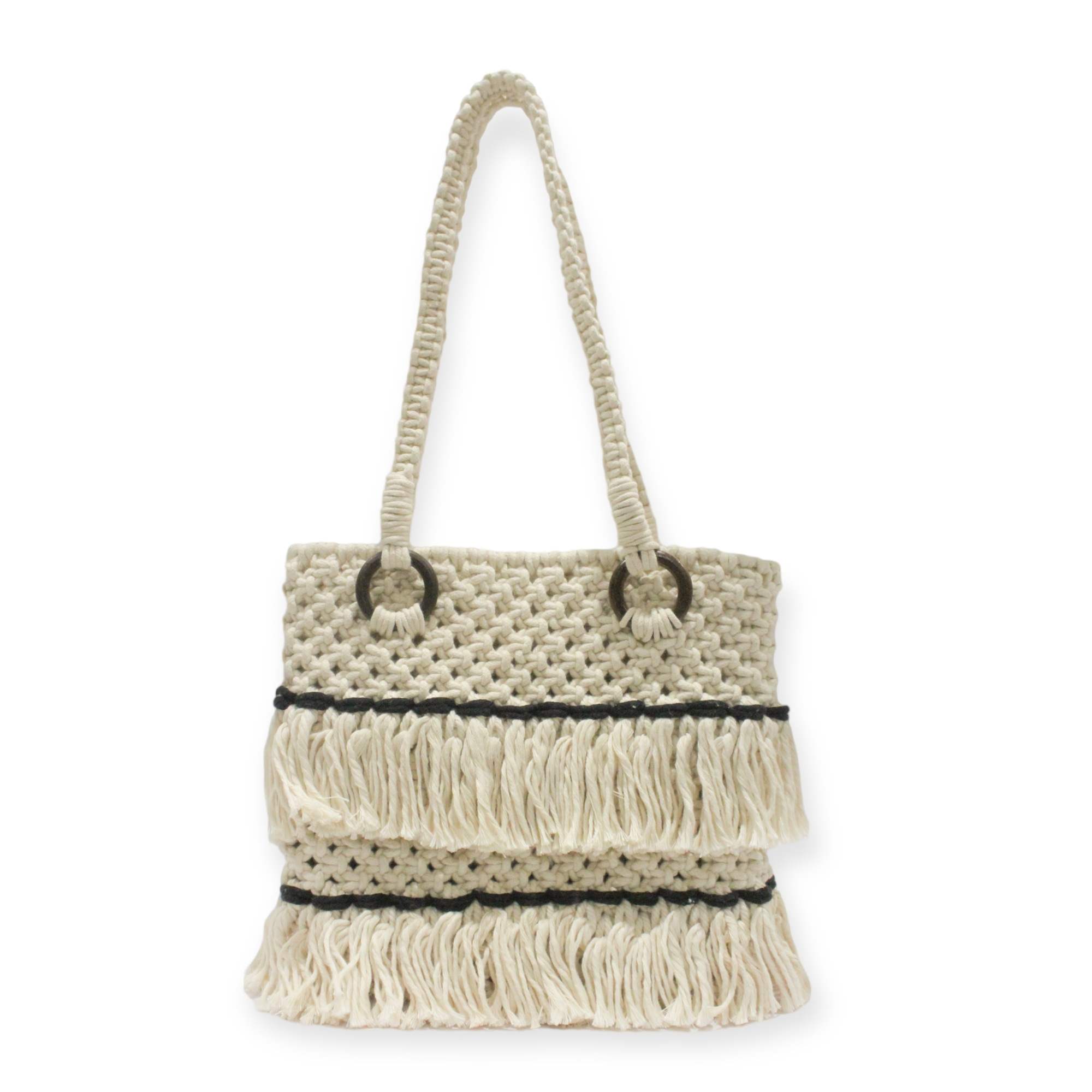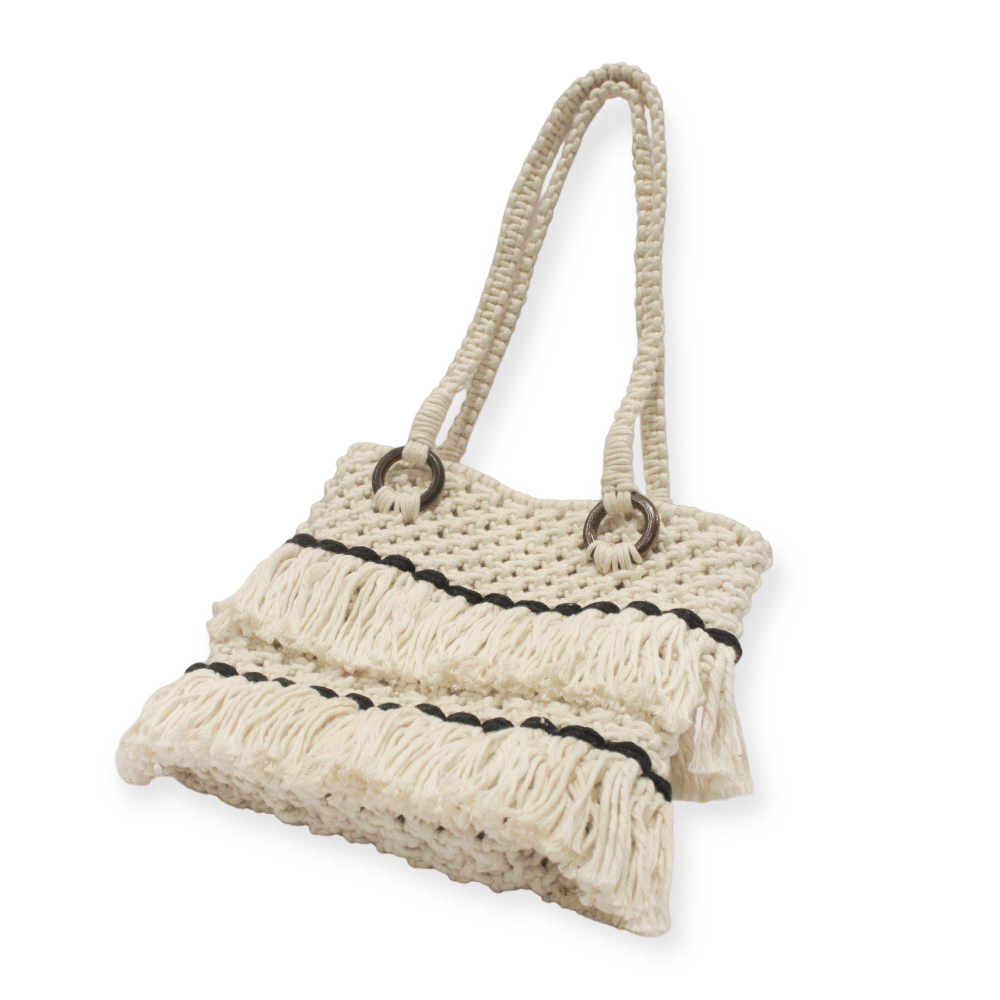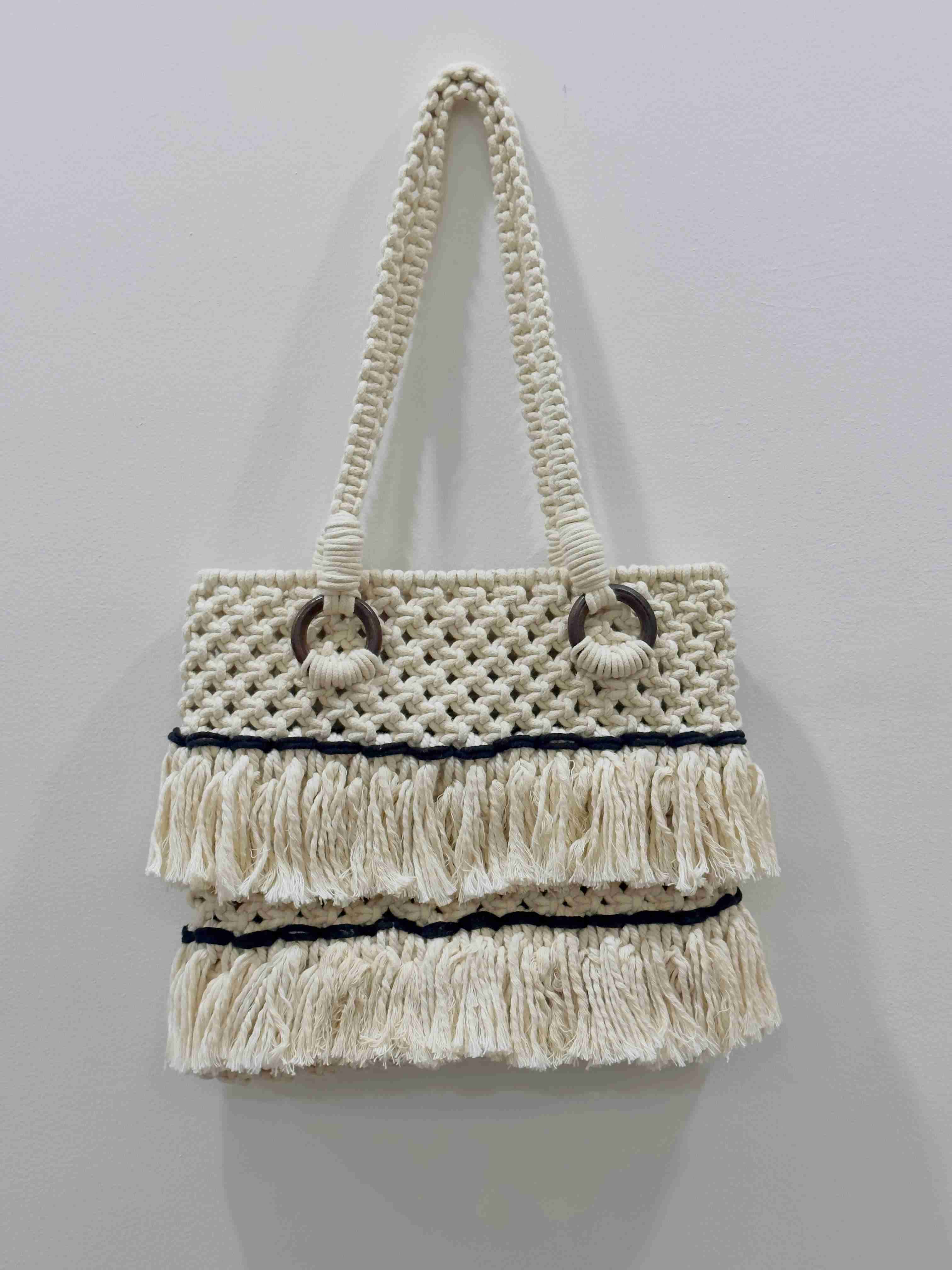 "Enhance your accessory collection with this elegant Handwoven offwhite Fringe Tote Bag a perfect blend of style and practicality!"
