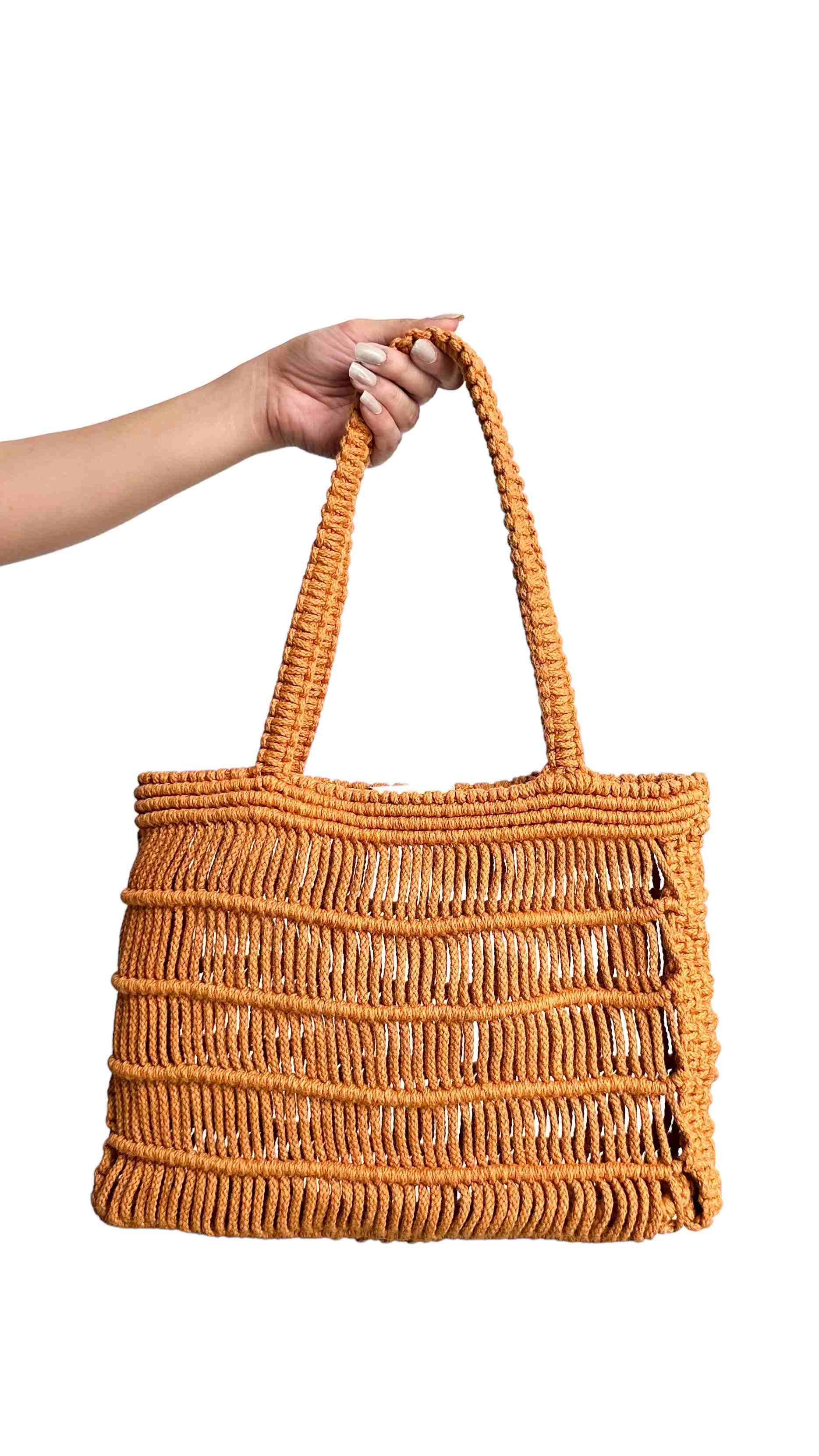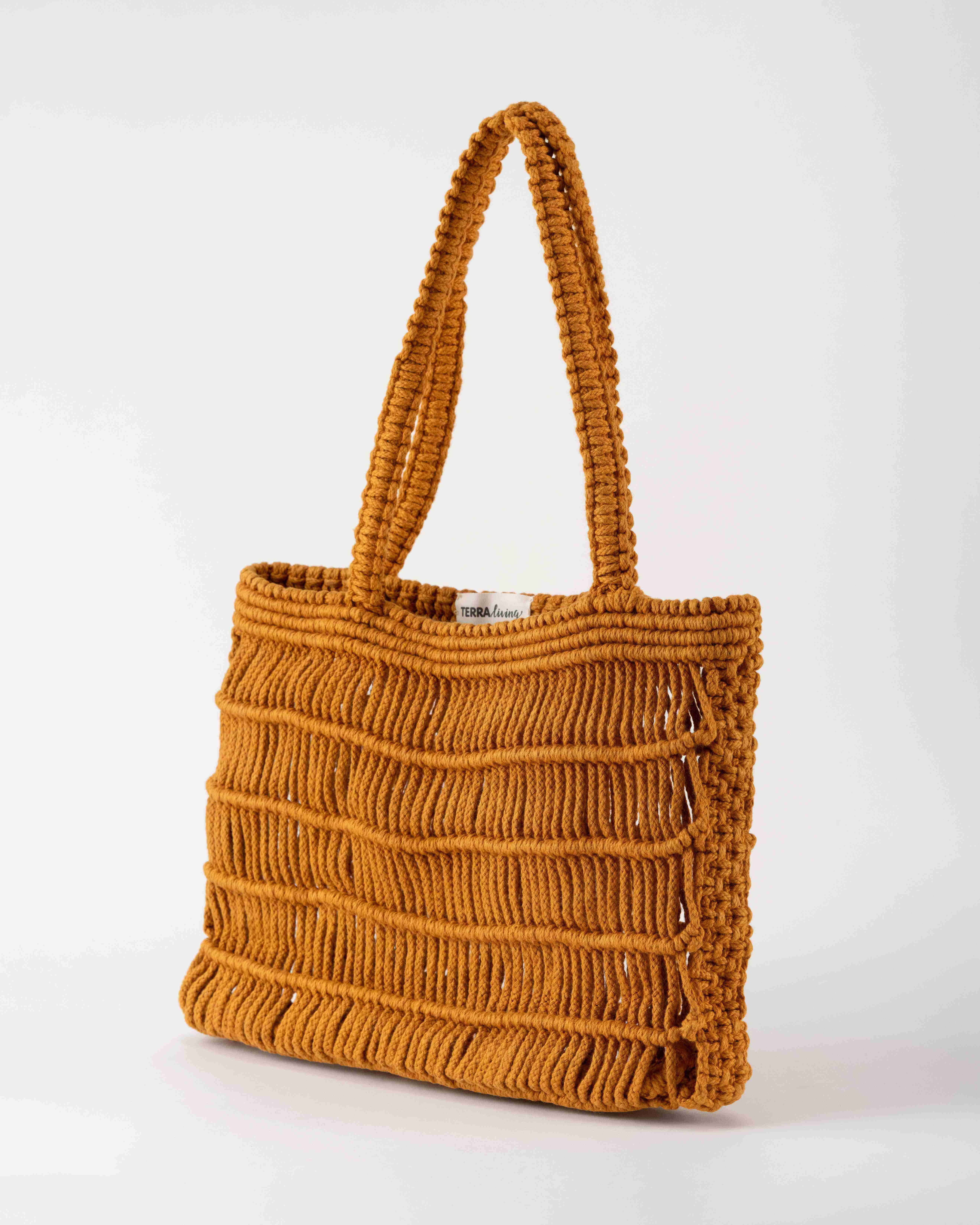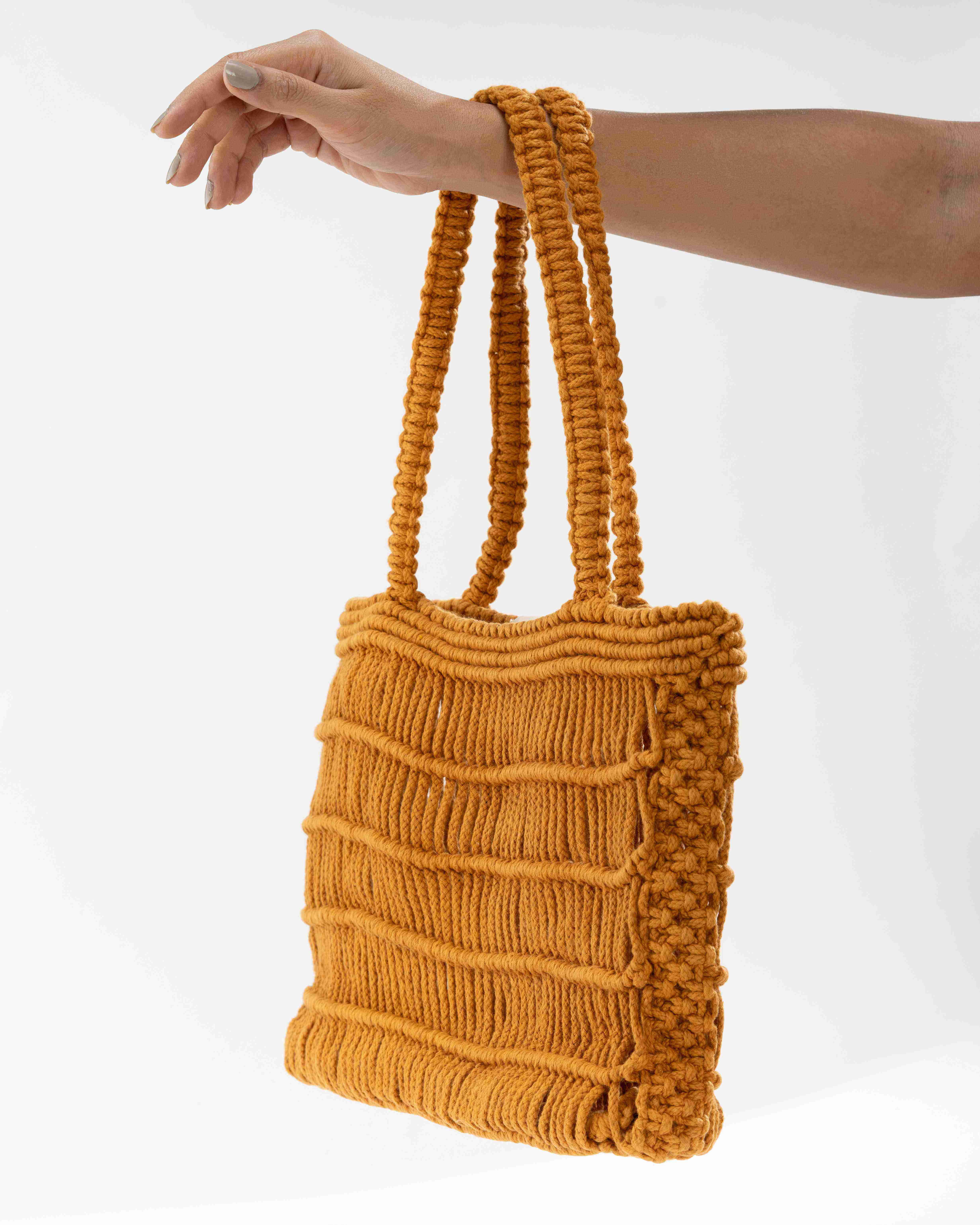 "Make this macramé tote bag your go-to accessory for a stylish and eco-friendly lifestyle."